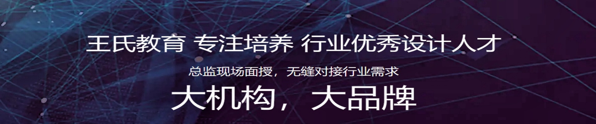 王氏教育是国内CG绘画/影视后期/游戏设计/动漫设计的实力教育品牌。2002年王氏教育品牌LOGO首次在创始人王康慧先生的CG作品中出现,后以免费CG教程的方式在业内得到广泛传播和认可。2008年成立培训公司和制作公司,在不借助资本的情况下,依靠口碑和研发实力从一个校区稳步拓展到全国13家直营校区。